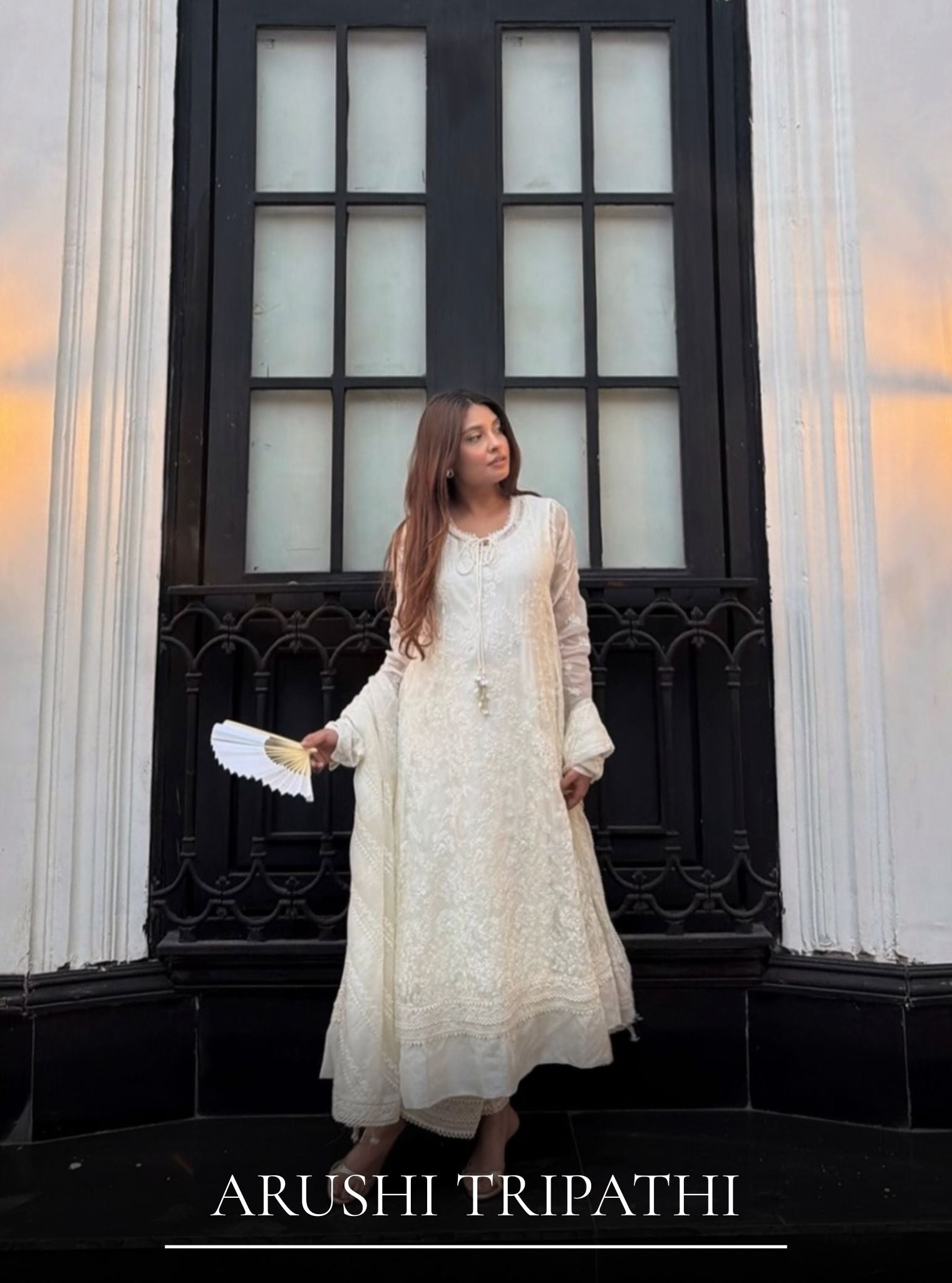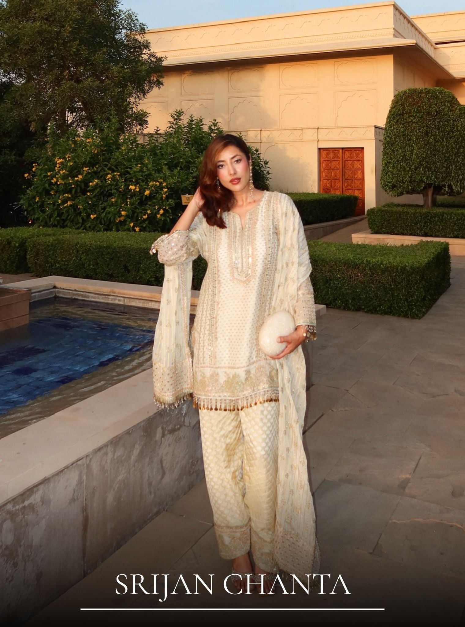 The colour feels so understated yet festive. The embroidery adds such a soft, elegant charm to the whole look. Loved how graceful and light this outfit feels. It’s perfect for intimate celebrations and special days