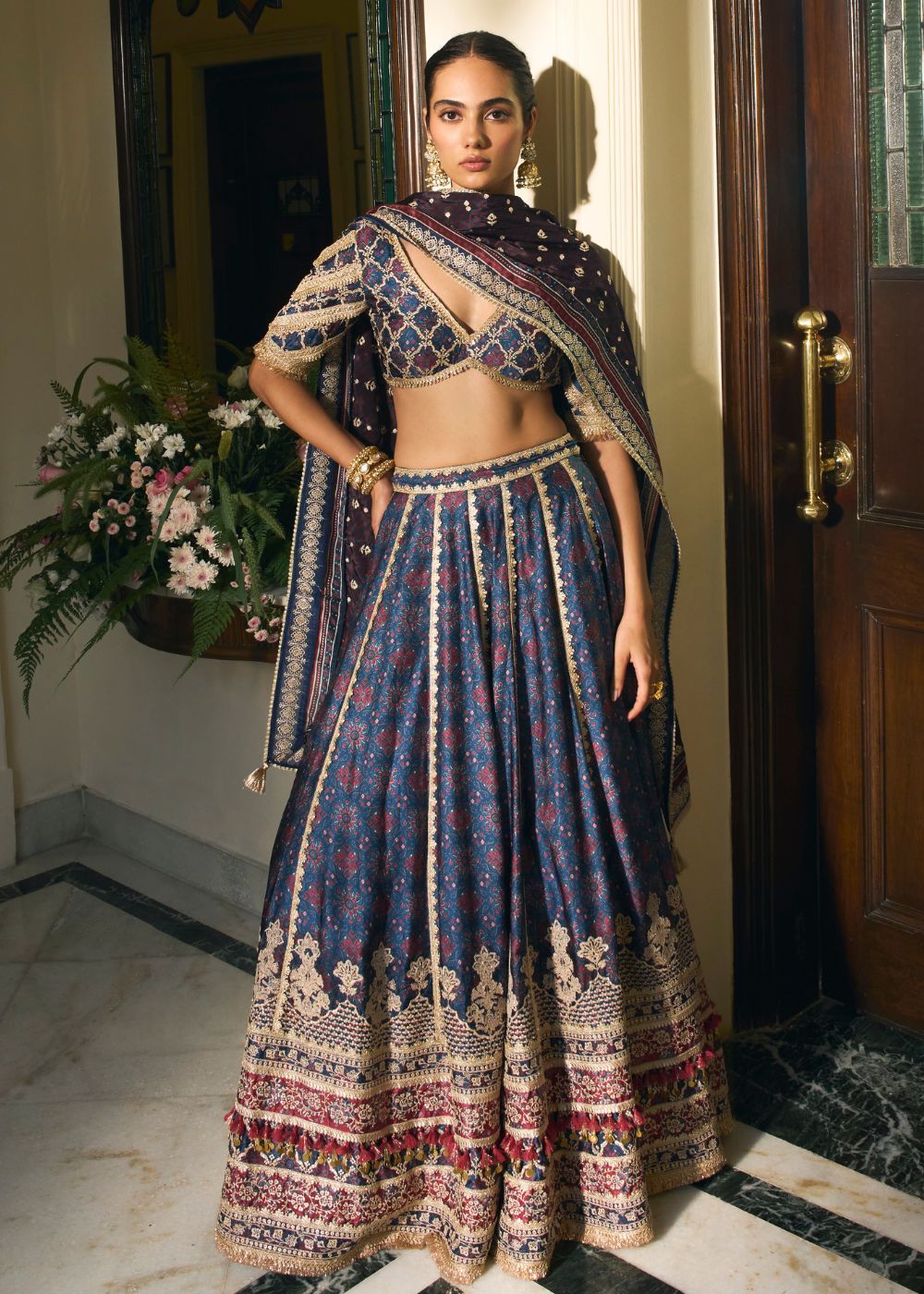Chose this deep indigo lehenga for a destination sangeet and it turned heads all night. Can’t get over how rich and detailed the embroidery is!