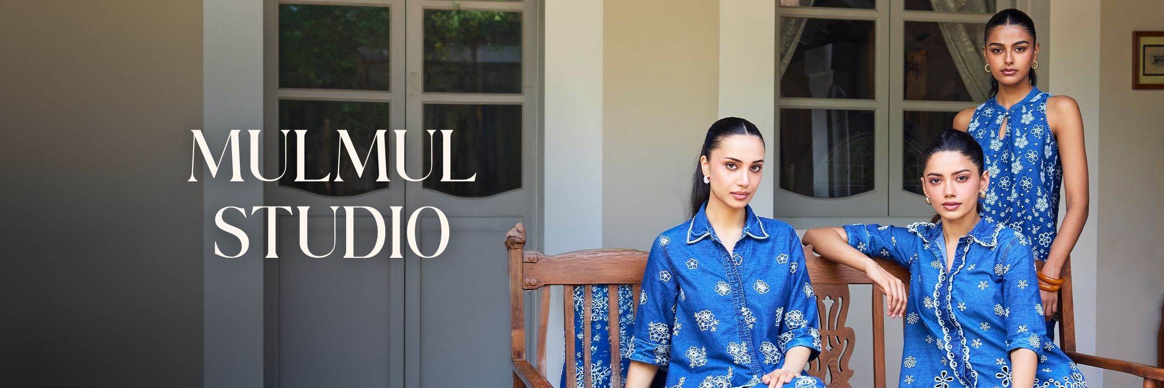 Presenting Mulmul Studio- a contemporary extension of Mulmul’s design language- crafted for those who love their ethnic fashion elevated, and effortlessly versatile. This thoughtfully curated selection redefines modern Indian wear with pieces that transition seamlessly from work mornings to weekend outings, from laid-back brunches to low-key celebrations. Think premium fabrics - comfortable cottons, dreamy organzas, cool denims, cozy wool - coupled with power silhouettes, brought together with Mulmul’s signature embroidery and charm. These timeless pieces work across seasons - made for women who live many lives and dress like it.