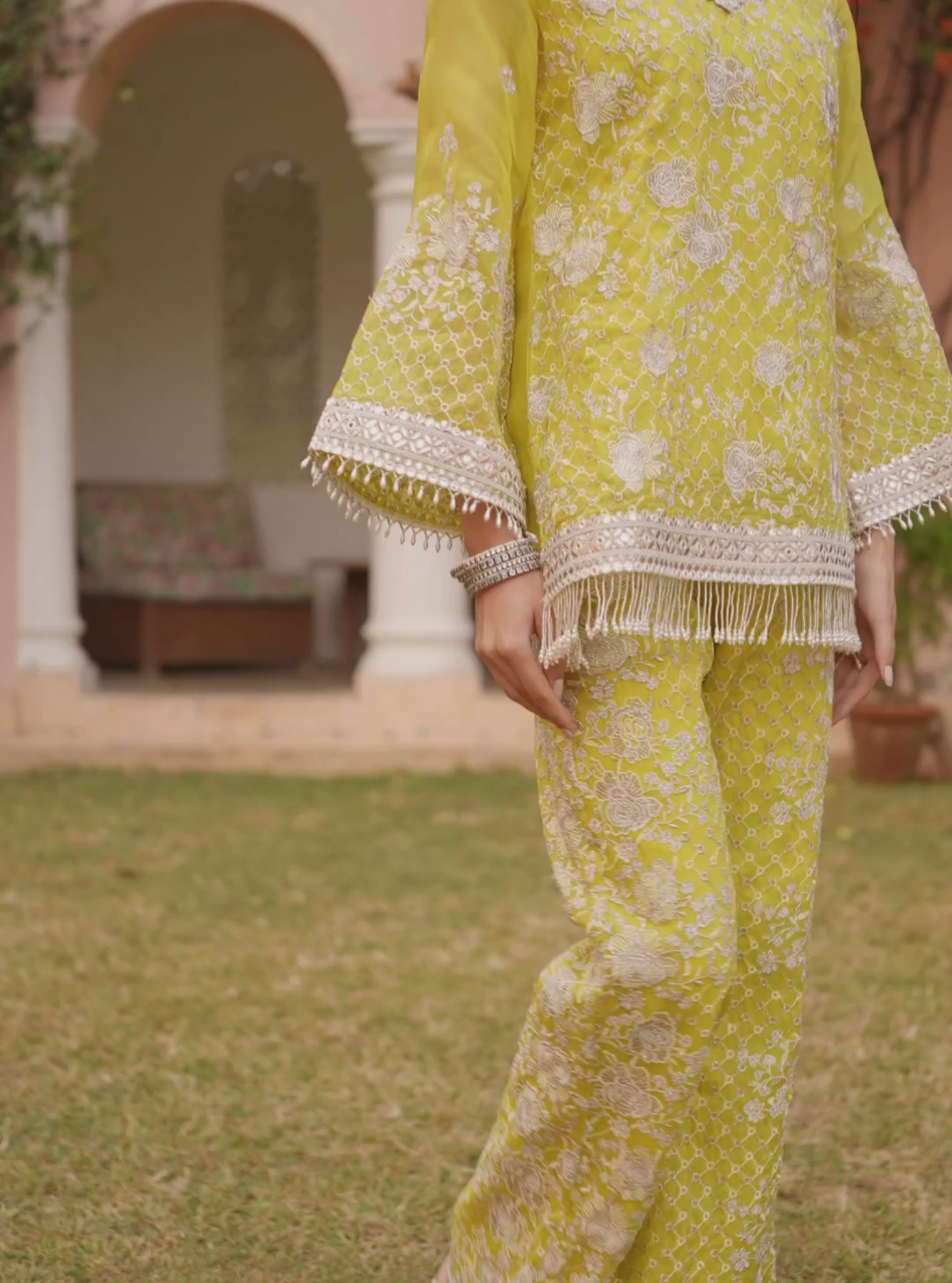 Chavi Mulmul Silk Light Green Waistcoat with Skirt