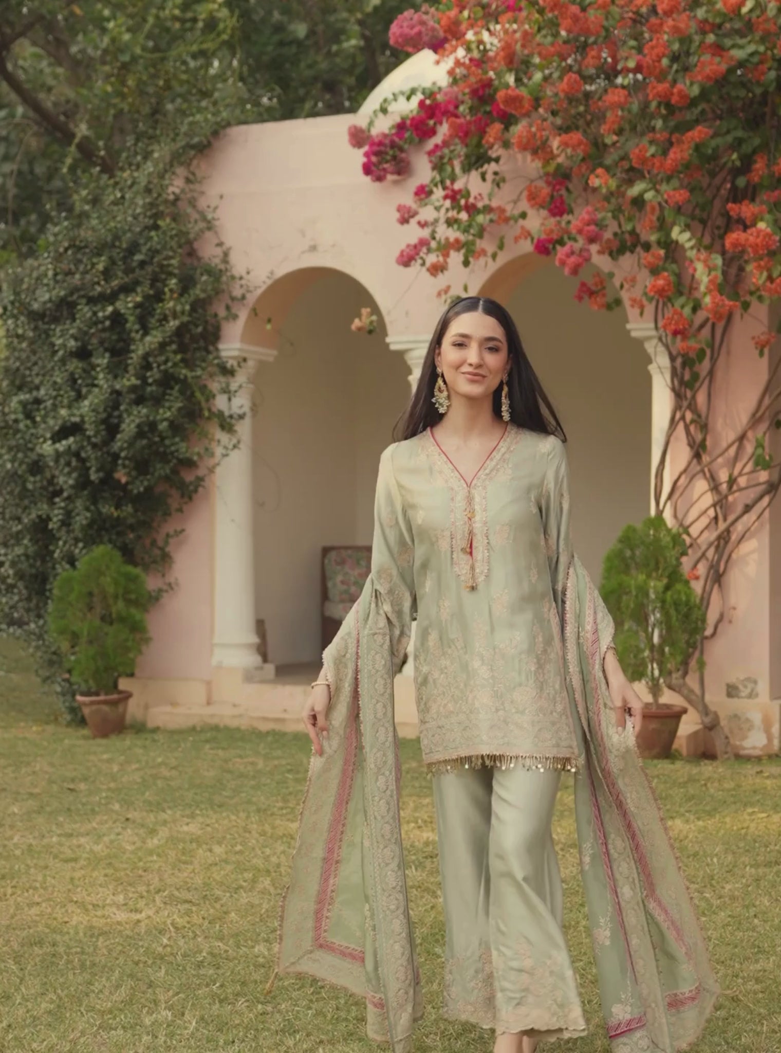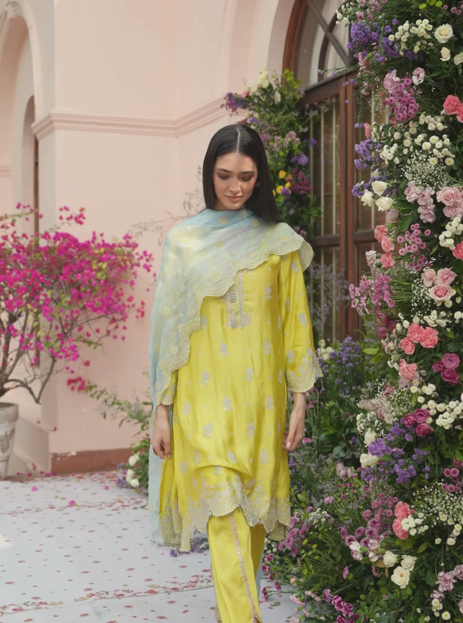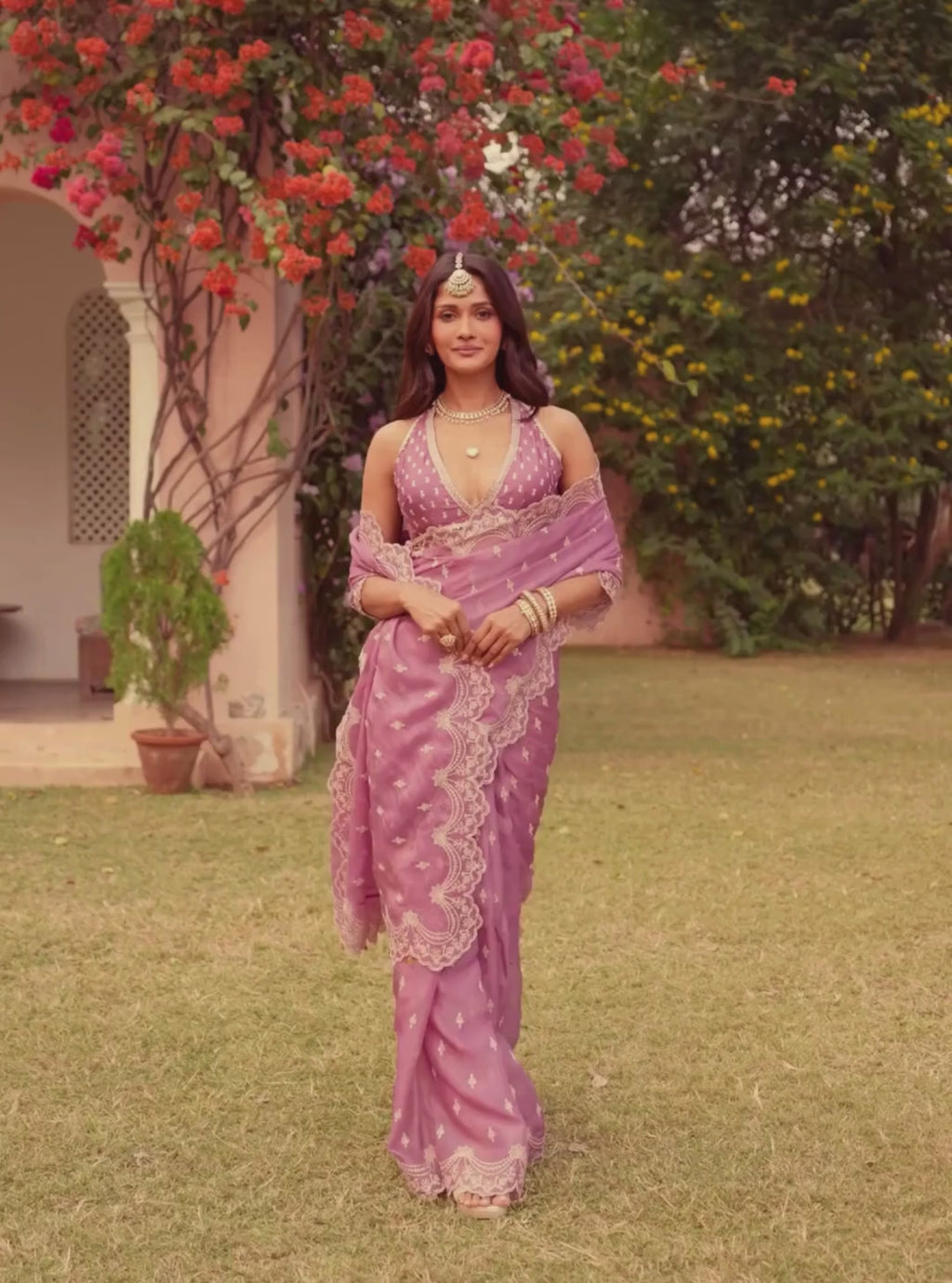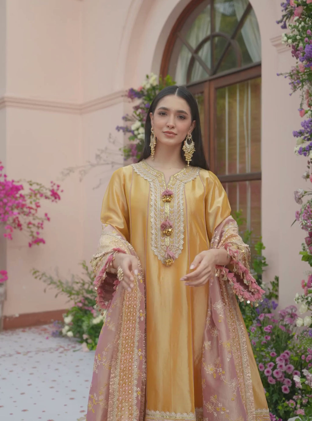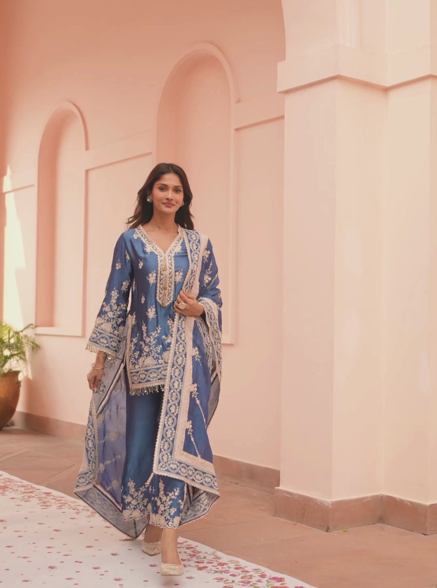 Phulkari Cupro Satin Rani Pink Kurta Set