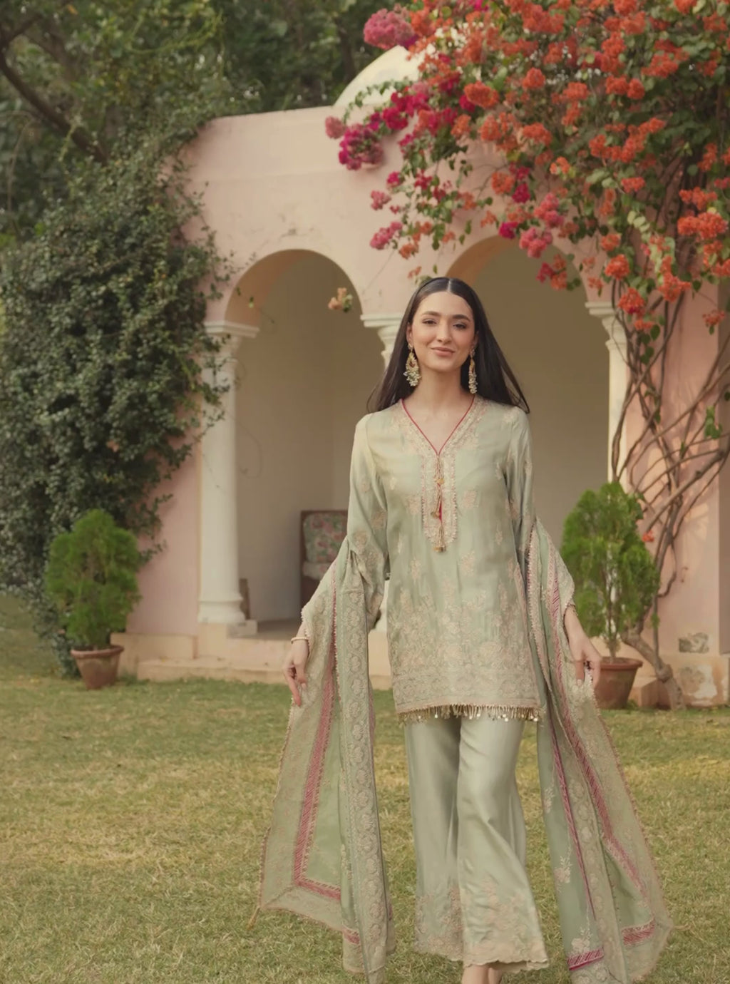 Jhumri Cupro Satin Rani Pink Kurta Set
