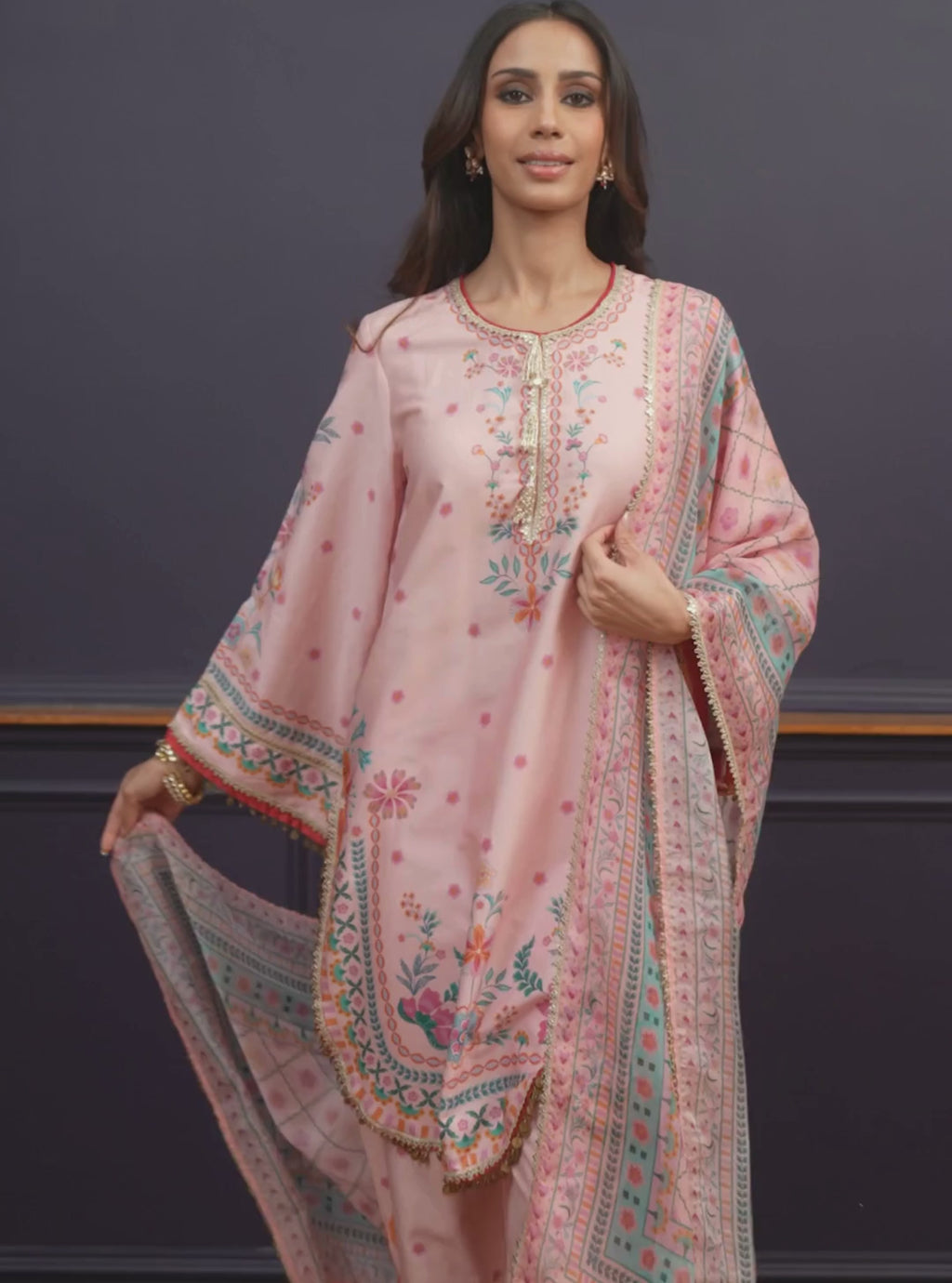 Omira Pima Satin Printed Pink Kurta Set