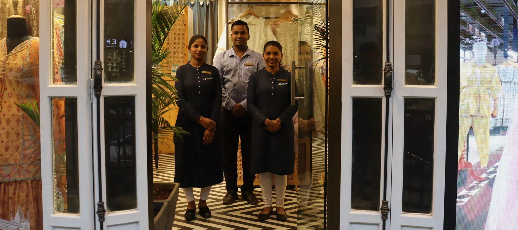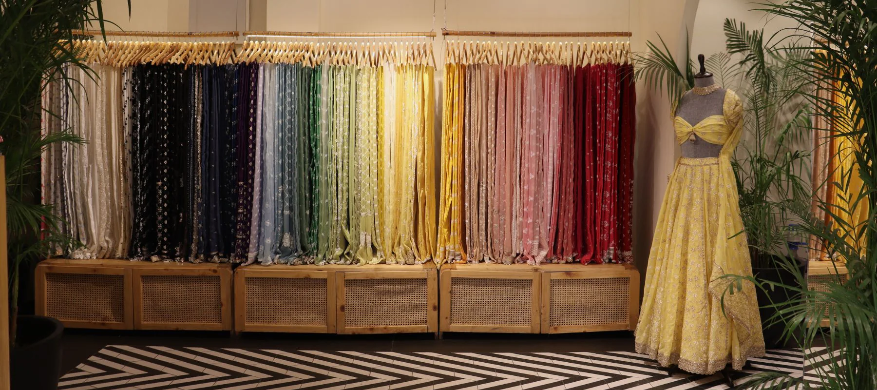 A stunning store with a massive jhula to take the centre-stage. The artfully displayed collection ensures you enjoy every bit of the Mulmul Experience.