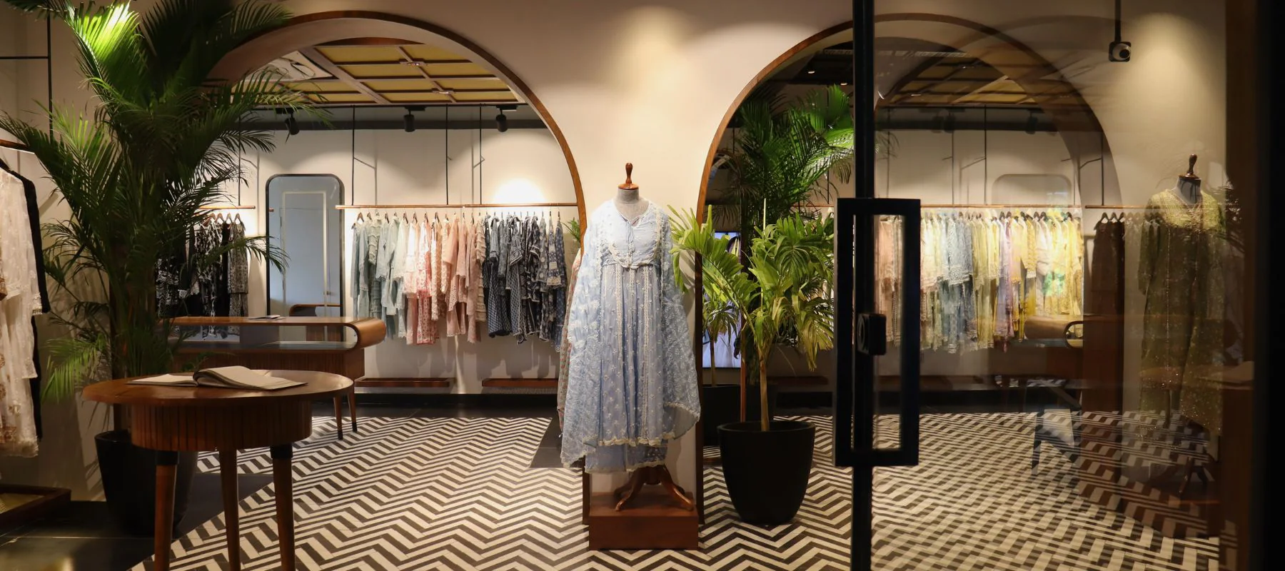 Our first store in Bangalore - boasts a stunning collection of Mulmul’s finest pieces, bags and jewelry.