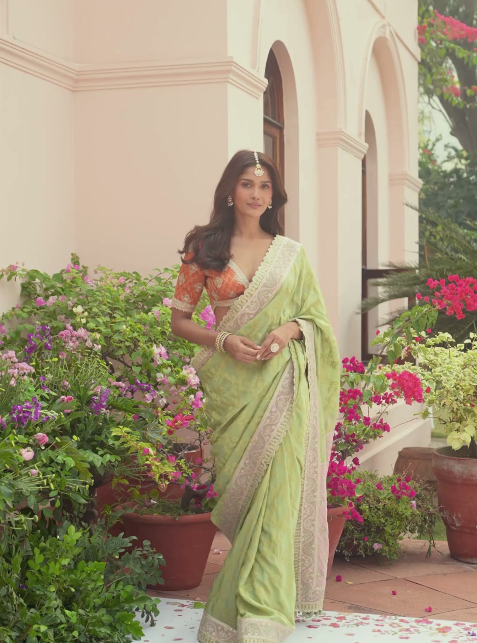 Woven in rich Banarsi fabric with a delicate floral jaal, this saree brings timeless charm to festive and wedding dressing. Elegant yet wearable, it’s designed for traditional celebrations and special occasions.