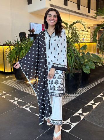 Experience Effortless Summer Sophistication In This Timeless Blue-And-White Kurta Set. Crafted From A Lightweight And Breathable Cotton, This Ensemble Is Designed To Keep You Comfortable In The Heat. The Kurta Is Adorned With Delicate White Floral Motifs, Intricately Embroidered To Create A Striking Contrast Against The Refreshing Blue Base. The Relaxed Silhouette Features A V-Neckline And Three-Quarter Sleeves. A Beautifully Embroidered Border Runs Along The Hemline And Sleeve Edges, Creating A Refined Finish. The Kurta Is Paired With Crisp Straight-Cut Pants, Featuring Matching Embroidered Detailing At The Hem. The Look Is Accentuated By A Matching Dupatta Adorned With Coordinated Floral Patterns.