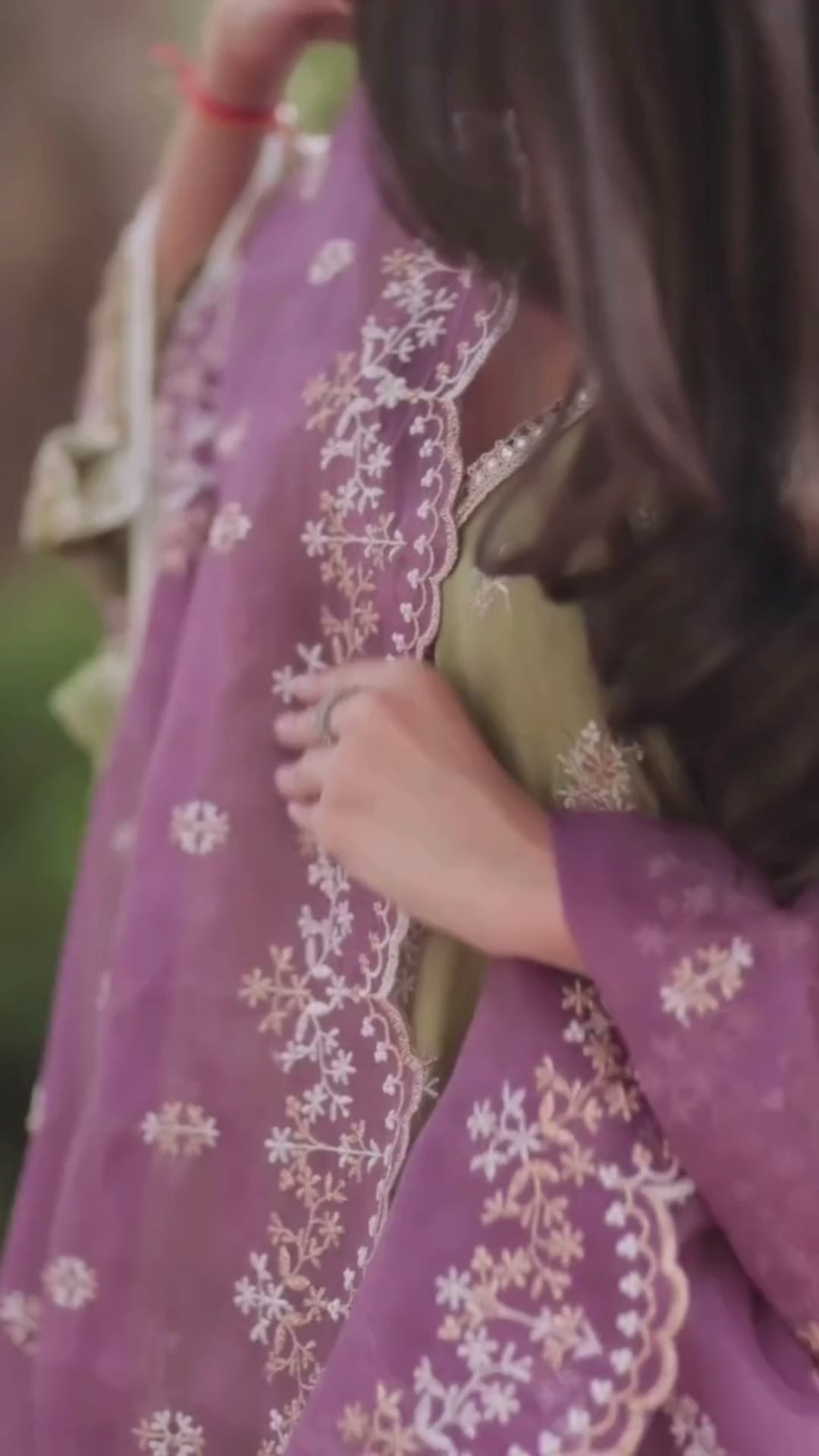 Dress it up with the contrasting dupatta with white embroidery and scalloped edges.
