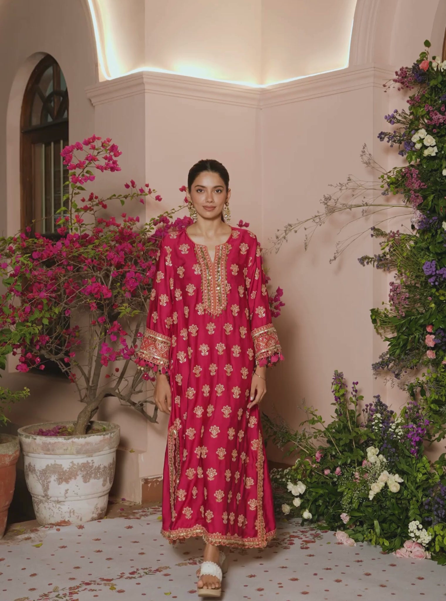 Crafted in fluid cupro satin, this kaftan set offers an easy drape with a softly festive feel. Designed for comfort and movement, it’s ideal for long celebrations, family gatherings, and relaxed wedding moments.