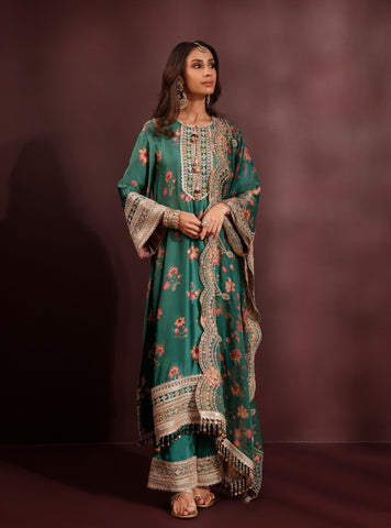 Drenched In A Rich Wine Print, The Ovia Kurta Set Is A Timeless Expression Of Sophistication. Cut In A Straight Silhouette, The Cupro Satin Fabric Drapes Fluidly, Lending A Subtle Sheen To The Ensemble. The Set Is Elevated With An Organza Printed Dupatta That Mirrors The Kurta’S Ornate Motifs — Scalloped, Embroidered, And Finished With Tassel Detailing — Perfect For Evening Festivities That Call For Effortless Elegance.