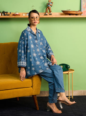 A modern take on the co-ord-easy denim, softened with tonal prints and cut in a drapey silhouette. The Veha Shirt features a roomy fit and curved hem, paired with relaxed straight pants for maximum comfort. It’s the kind of set that looks polished with zero effort-ideal for work days, travel plans, and every laid-back moment in between.