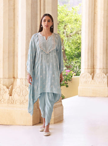 It’S Paired With Matching Straight Pants Embroidered At The Hem, Completing The Look With Just The Right Amount Of Structure. Light, Breezy, And Full Of Personality, This Set Is Perfect For Rakhi Mornings That Roll Into Evenings.