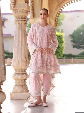 The Anmika Kurta Set In Navy Is A Celebration Of Deep Hues And Delicate Craftsmanship. Rendered In Sheer Organza, This Timeless Silhouette Is Richly Adorned With All-Over Pitha Embroidery; Intricate, And Full Of Festive Spirit. Designed With A Round Neckline And Sheer Sleeves That Flow Into An Effortlessly Elegant Finish. Paired With Navy Cotton Pants, Delicately Embroidered At The Hem, They Add A Touch Of Symmetry With Poise. The Matching Organza Dupatta Adds A Dreamy Layer, Elevated With Handmade Tassels That Sway With Every Step; Capturing The Joy Of The Occasion. Elegant Yet Striking, This One’S Made To Light Up Raksha Bandhan With Love, Style, And A Little Sparkle.