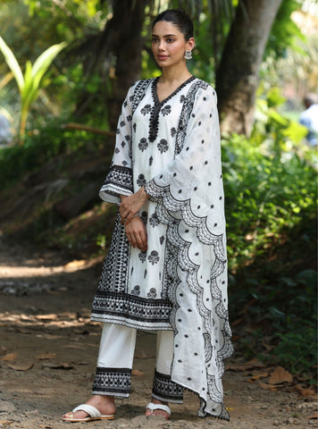 This Lavender Kurta Set Is Designed For Those Who Appreciate Timeless Beauty. The Kurta, In A Soothing Lavender Shade, Features Intricate White Thread Vintage-Inspired Embroidery. The V-Neckline Is Accentuated With Delicate Lace Trims. The Scalloped Edges Along The Sleeves And Hemline Further Elevate The Look With A Refined Finish. Complementing The Kurta Are Straight-Fit Pants Adorned With Matching Lace And Embroidered Borders, Ensuring A Seamless And Graceful Silhouette. The Dupatta, A True Masterpiece, Showcases Elaborately Embroidered Scallop Borders And Floral Embroidery.