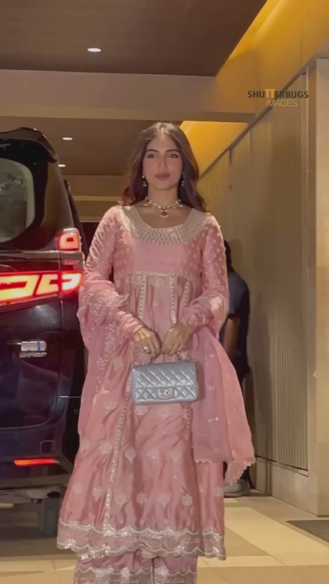 This vibrant kurta set captures the essence of festive elegance. The light pink kurta is lavishly adorned with intricate zari embroidery - the subtle contrast adds to its luxurious appeal. The flowing anarkali silhouette with a defined waistline flatters the figure, making it perfect for twirling on the dance floor. The matching palazzo pants mirror scalloped hem and are embellished with detailed embroidery. Completing the ensemble is a dupatta with a stunning gold border, echoing the kurta's embroidery and enhancing the outfit's overall opulence.