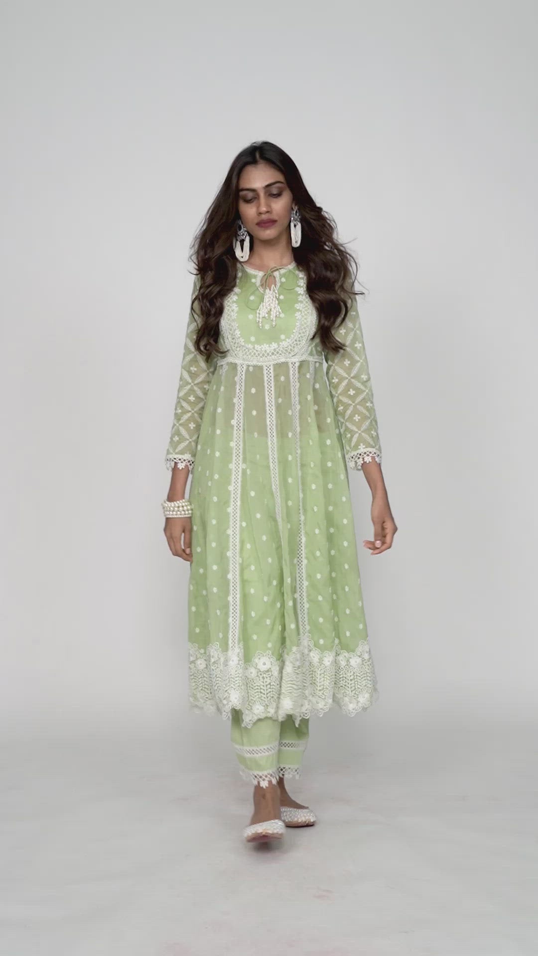 Round Neckline With Keyhole Embellished With Pearl Tassels