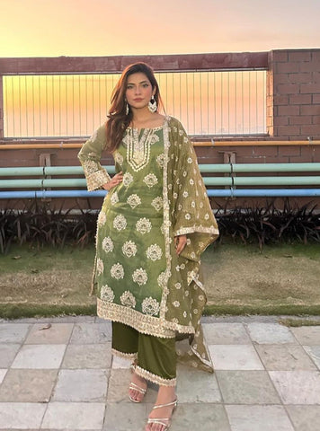 - To Complete The Set, Drape Yourself In The Matching Dupatta, Showcasing Similar Embroidery Work And A Gota Border For A Harmonious Finish.