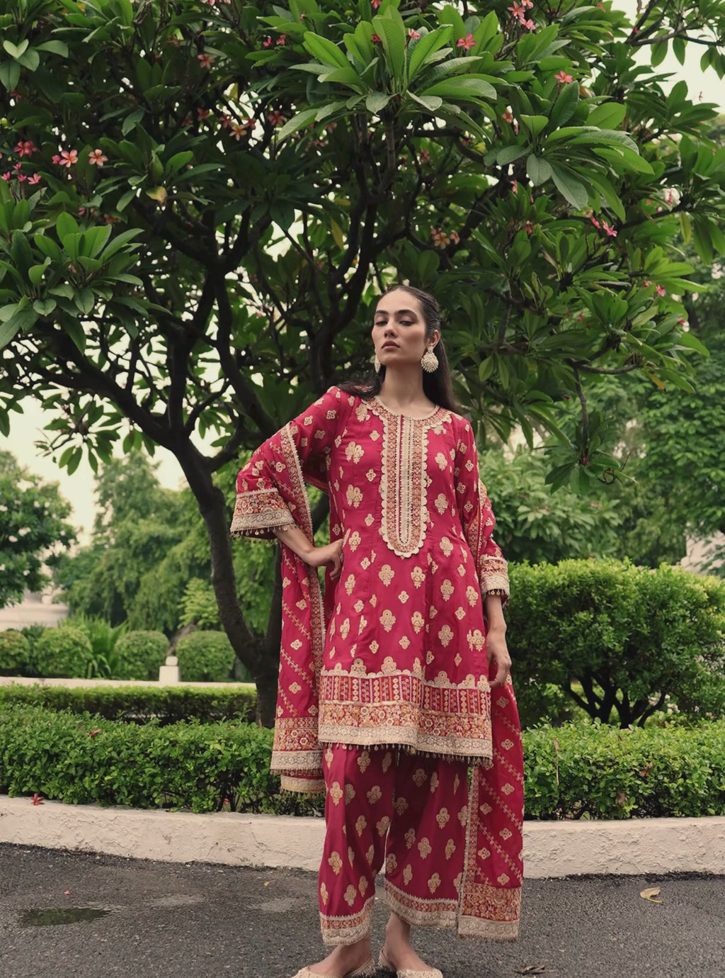 Tarana Viscose Glass Organza Luxe Red Kurta Set