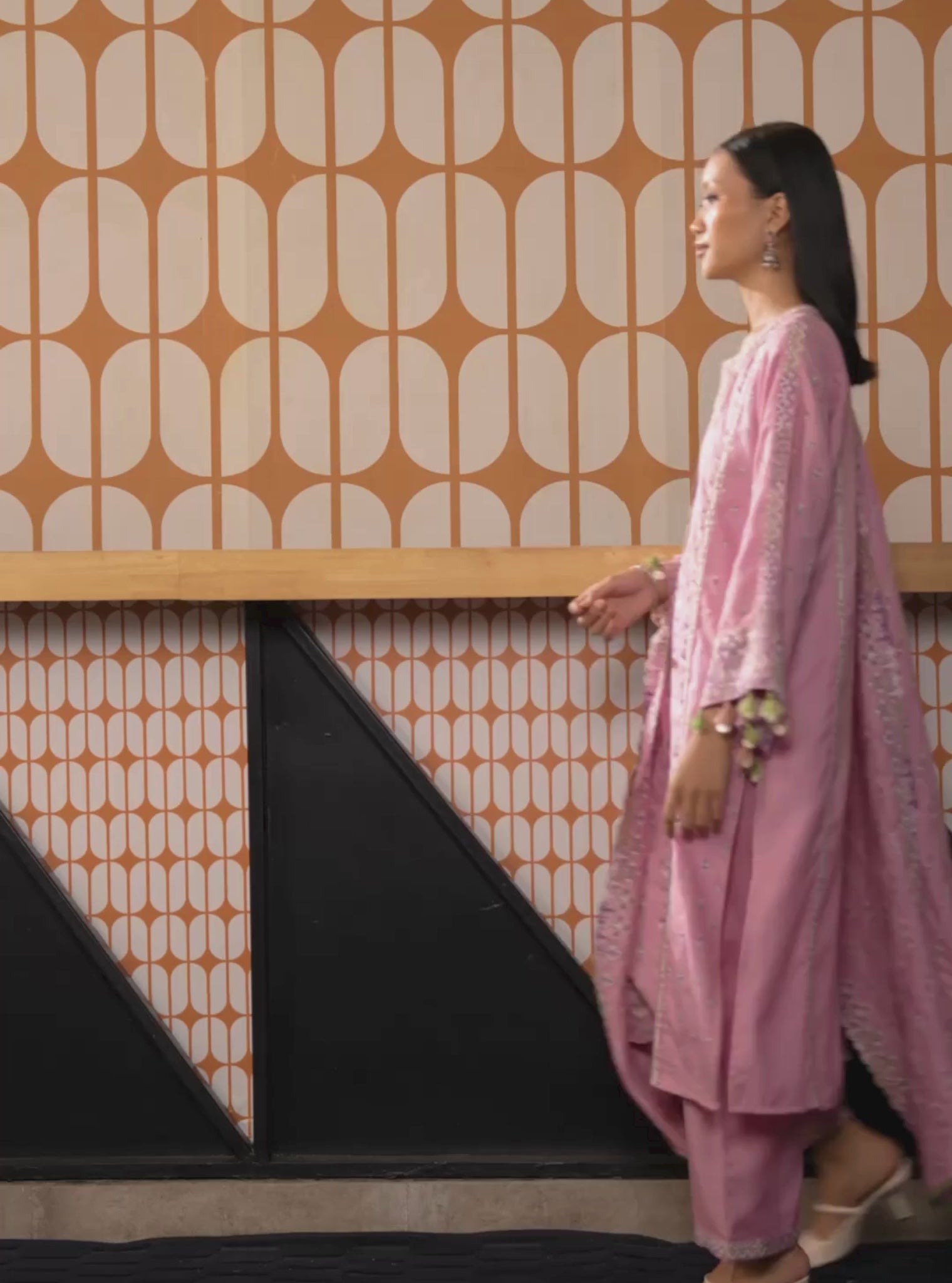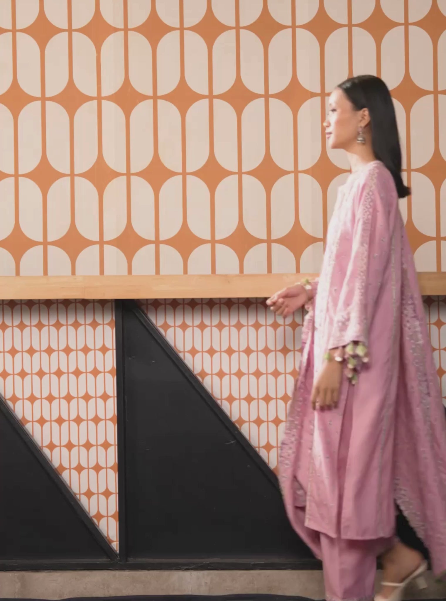 Romantic and relaxed, the Phoebev Kurta Set in pink channels winter florals through intricate thread motifs. Its straight silhouette and warm wool fabric make it both flattering and functional.