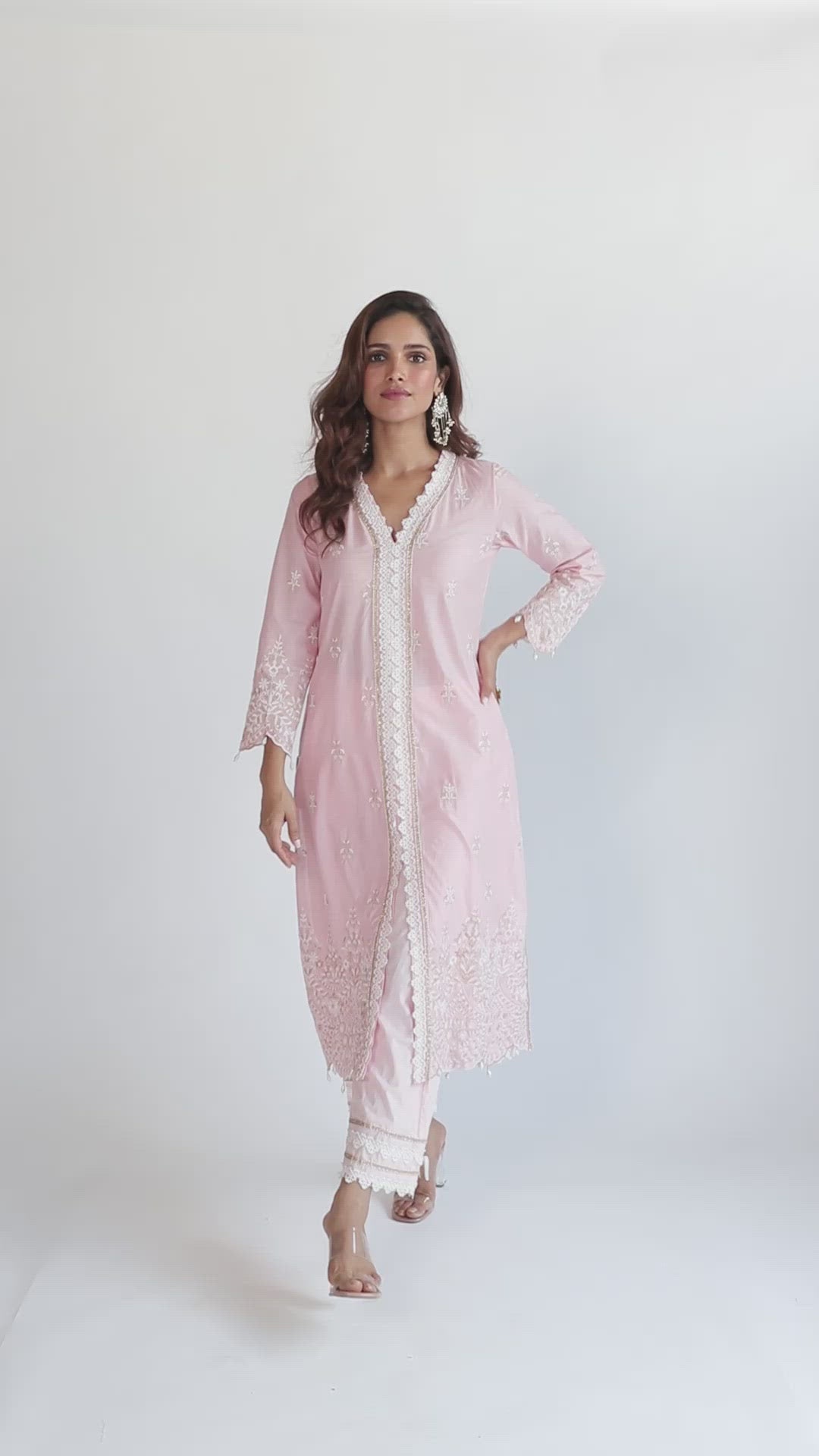 Embroidered Sleeves With Hand Tacked Pearl Details